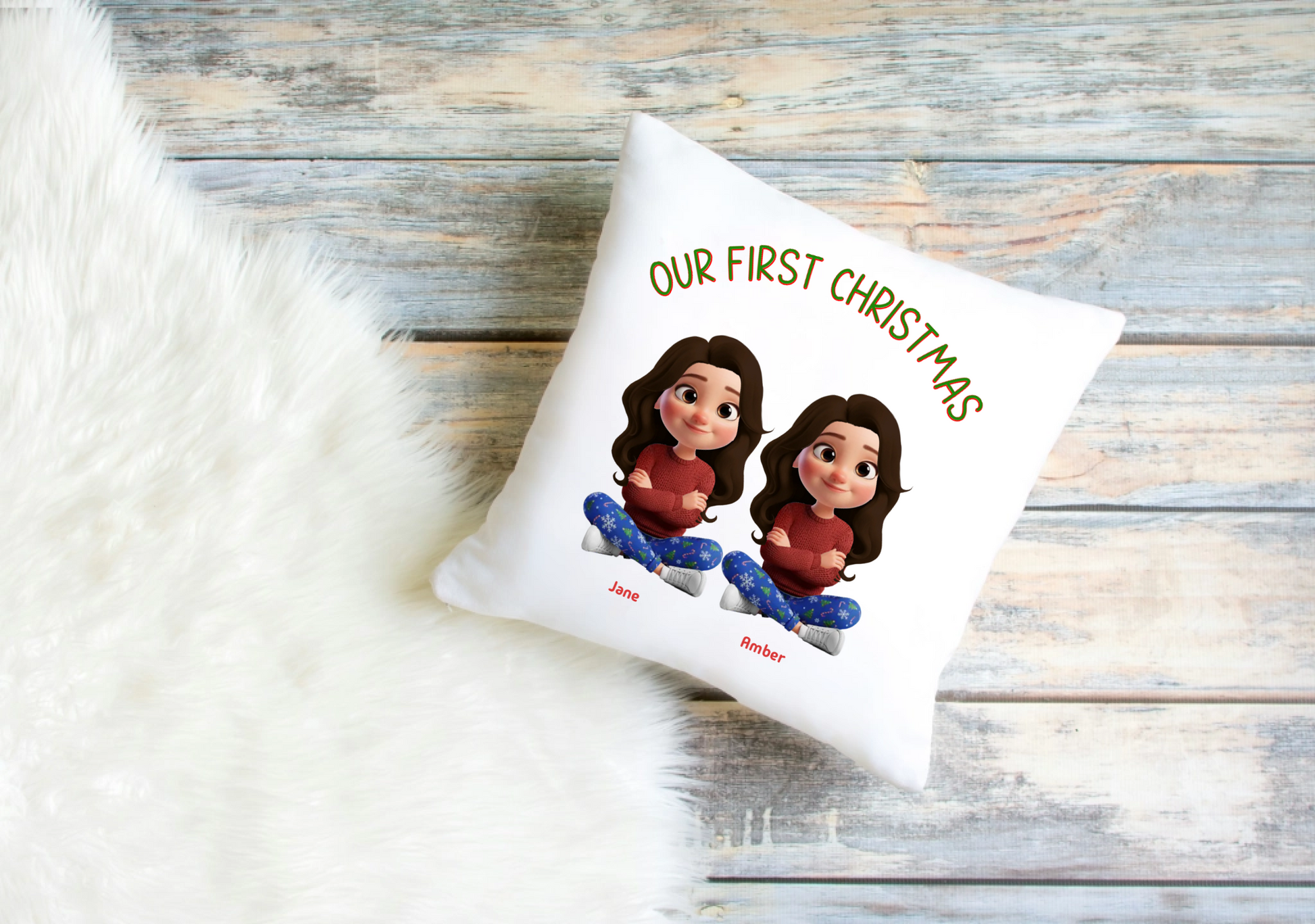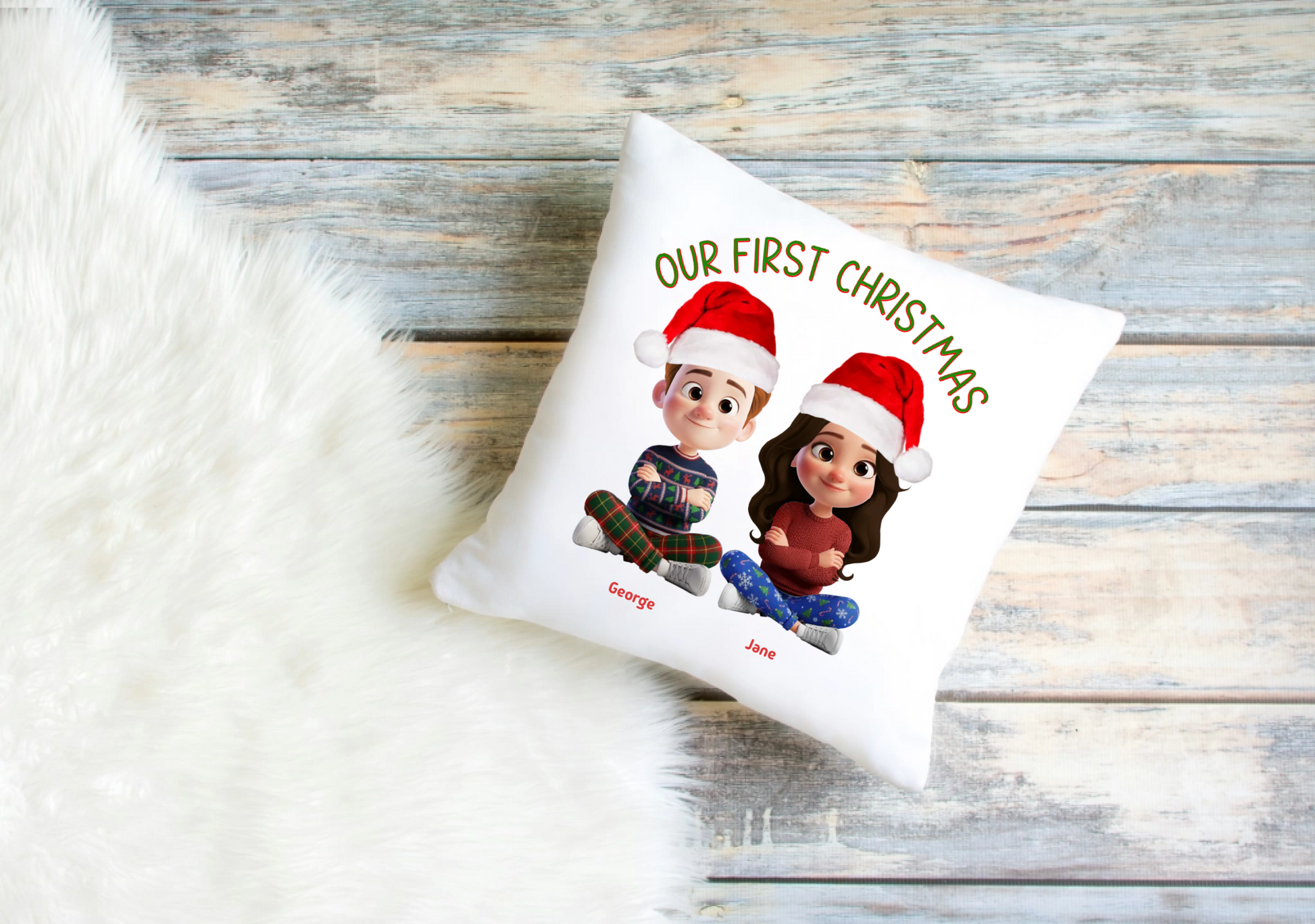 Our First Christmas Cushion Cover – Personalised Couple Clip Art Design