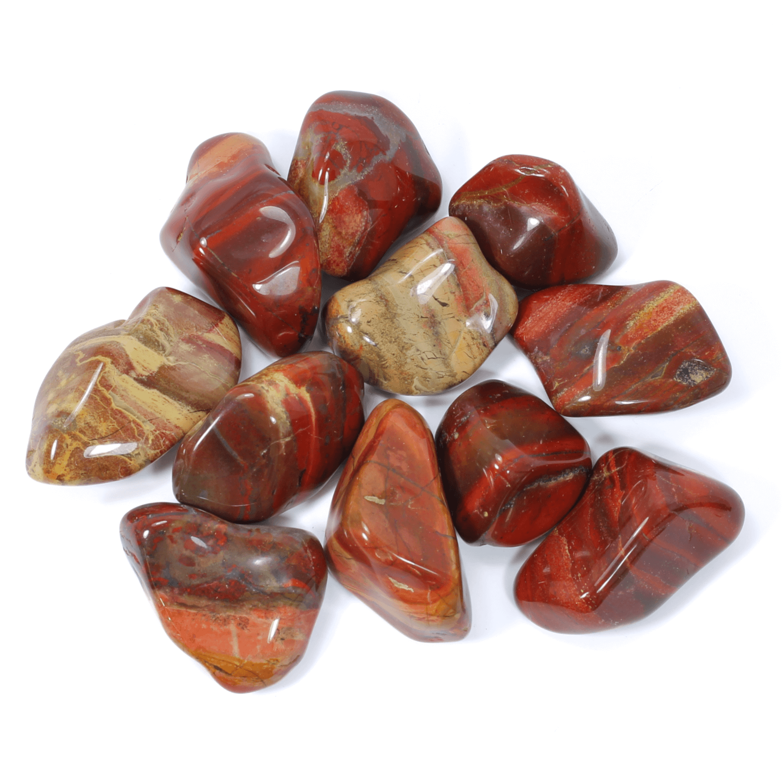 Rich in earthy tones and natural beauty, this Rainbow Jasper Polished Tumblestone is a stone of grounding, strength, and energetic stability. Its layered bands of deep reds, browns, and occasional soft creams evoke the power and resilience of the natural world.
