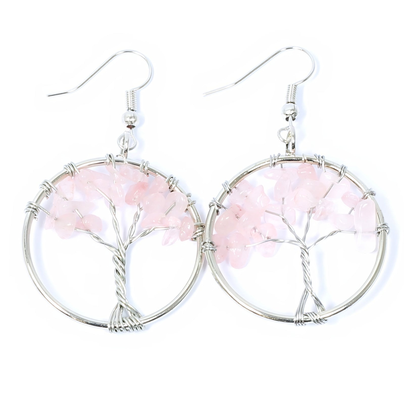 These Rose Quartz Tree of Life Earrings feature soft, pink rose quartz gemstones set in a delicate Tree of Life design. Symbolising love, compassion, and emotional healing, these earrings combine the gentle energy of rose quartz with the timeless beauty of the Tree of Life symbol. The soothing pink hues of rose quartz are believed to promote self-love, enhance inner peace, and foster harmonious relationships, making these earrings a perfect accessory for everyday wear or special occasions.