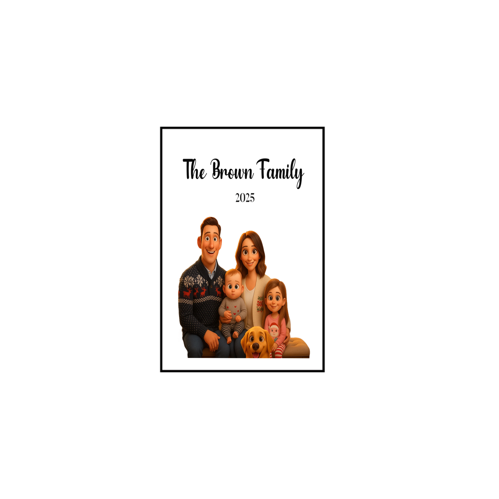 Turn your favourite family photo into a charming keepsake with our personalised family cartoon wall art print. Simply upload your family picture, and it will be transformed into a cartoon-style AI illustration, creating a warm and meaningful piece of wall décor.