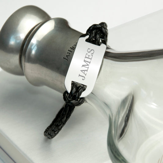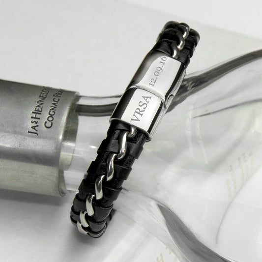 Personalised Men's Dual Leather Woven Bracelet in Black