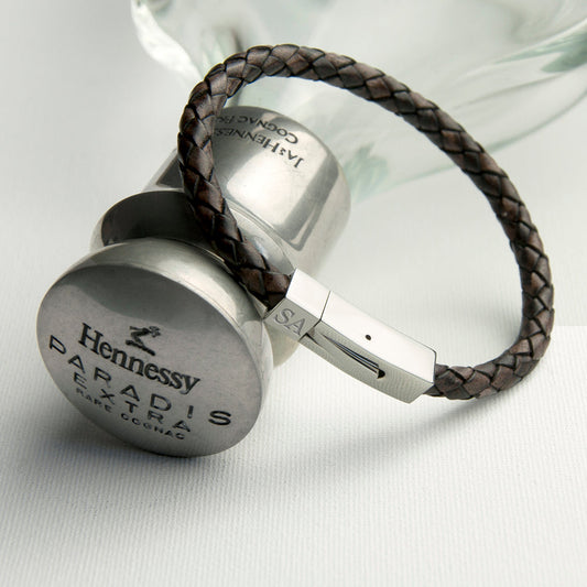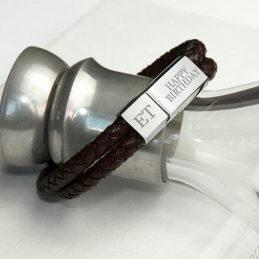 Personalised Men's Dual Leather Woven Bracelet in Umber